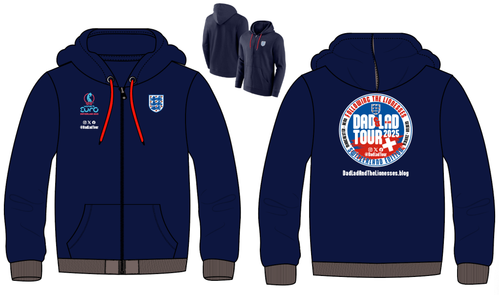 I ordered a hoody (hoodie?) from the FA (Football Association) website. It was in the sale and was I thought, at £28.00, a more than reasonable price. I’ve never had an official (or unofficial for that matter) FA hoodie (hoody??). I have designed (guess what my background/trade is) a logo for our trip/blog/socials and will be getting this printed onto my new hoody (hoodie???). I have approached a local company to print it and popped down to see them on Monday with my design on a flash drive. They are printing it DTF (direct to film – for anyone interested) onto a substrate (the film bit of that DTF terminology) and they will call me when it is ready. Then I will pop back to check I am happy with its positioning before it gets heat pressed permanently onto my hoodie (hoody????).