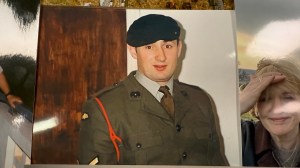 On entering the crematorium for the service, two screens at the front displayed a picture of Phil from his days in the Royal Marines. My, Phil was a handsome chap! He looked so proud to be wearing his uniform, that famous green beret atop his head, his cheeky grin staring out at you. From the angle Phil is stood at, you can just make out a badge on his right shoulder. The green badge, with its golden wings and silver parachute, indicates Phil was, not only a Marine and a member of 45 Commando, but he was a specialist parachutist. Phil completed 87 jumps despite being terrified of heights; I’m told he hated every one of the 87.