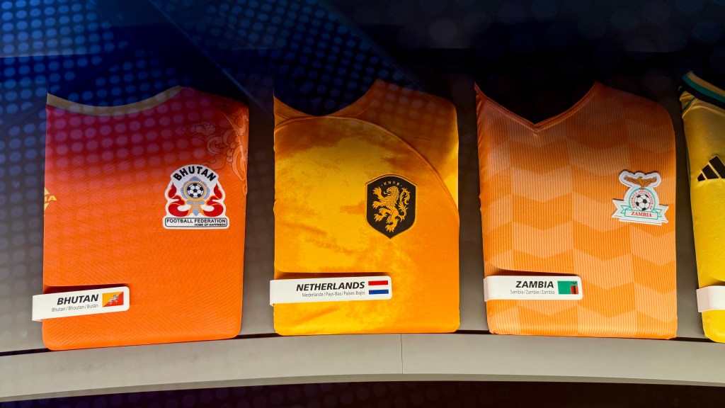 1. The quite colourful and impressive display of current shirts from all the member nations. It’s arranged like a colour wheel, or a decorators paint swatch, with all the coloured shirts fanned out. I seek out England’s shirt before moving on to snap the shirts of the other nations we will be watching whilst over here. I also gaze upon the German national shirt. Anyone who knows me will attest to my love and admiration of Germany’s team shirts. Sure they have had a few stinkers but, largely, they are magnificent shirts.