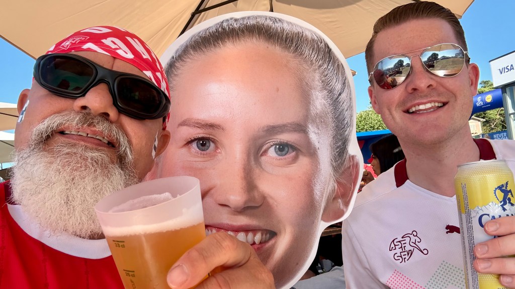This station is RAMMMED with Swiss fans. Bright red shirts are everywhere. Flags, face paint, hats. The full works. “Hopp Schwiiz” rings out.